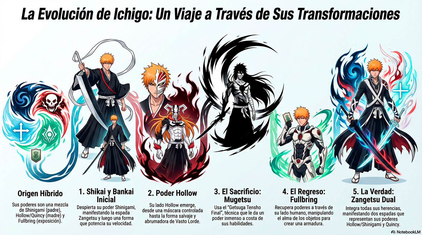 Fãs leais de Bleach enfrentam um desafio constante: desvendar a sequência precisa de todas as transformações de Ichigo. Lembras-te do Shikai inicial contra Renji Abarai? Do Bankai precipitado perante Byakuya com a ajuda de Yoruichi? A forma Vasto Lorde que destrói Ulquiorra no Hueco Mundo. O Fullbring de Ichigo durante o arco Lost Agent Substitute. E os clímax em Thousand-Year Blood War com o verdadeiro Shikai de Ichigo e o verdadeiro Bankai de Ichigo.