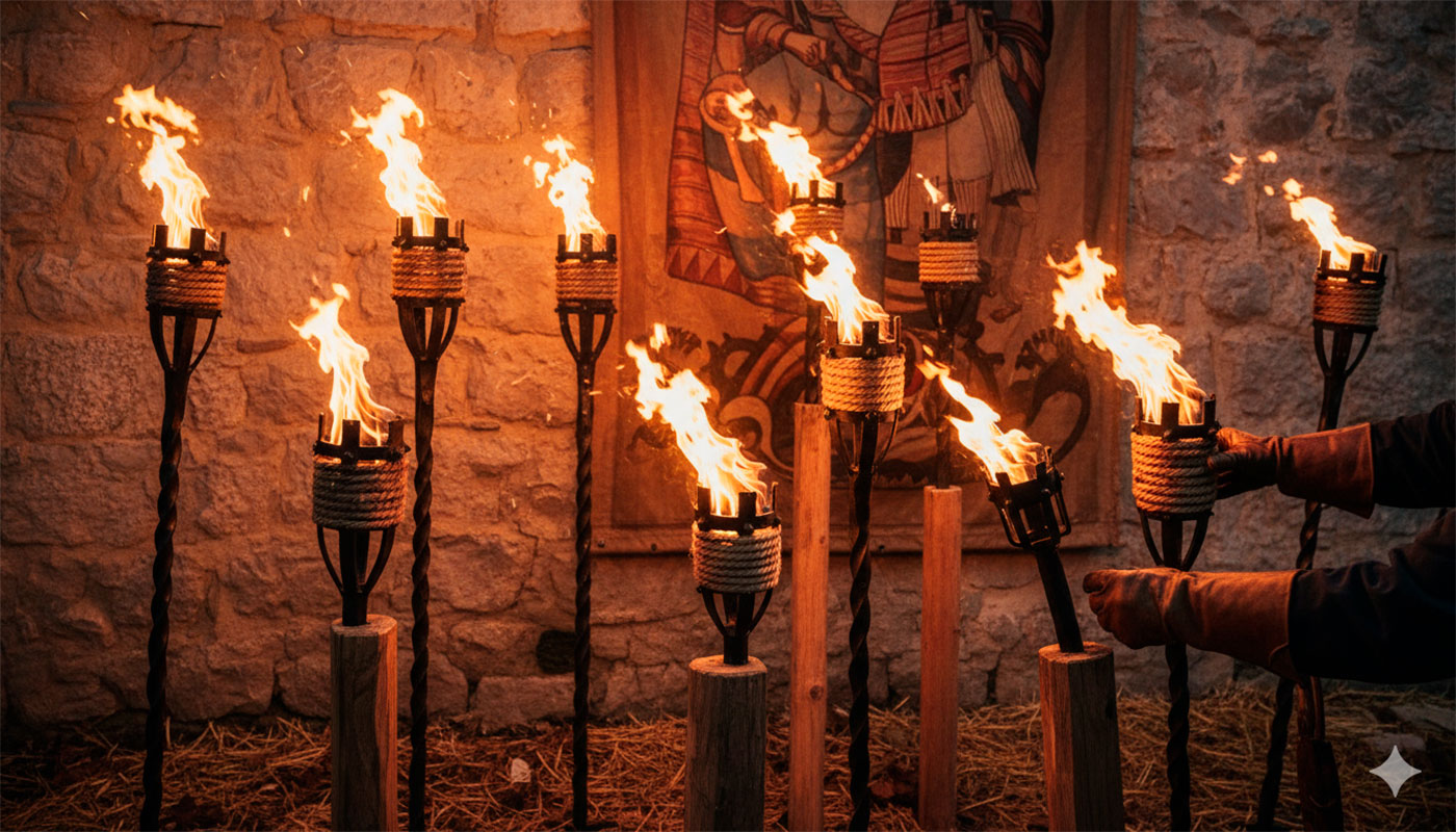 O crepitar do fogo foi, durante milénios, o companheiro inseparável do guerreiro na guarda e do nobre no banquete. Imagine um castelo mergulhado na penumbra, onde a única guia são as línguas de fogo que dançam sobre as paredes …