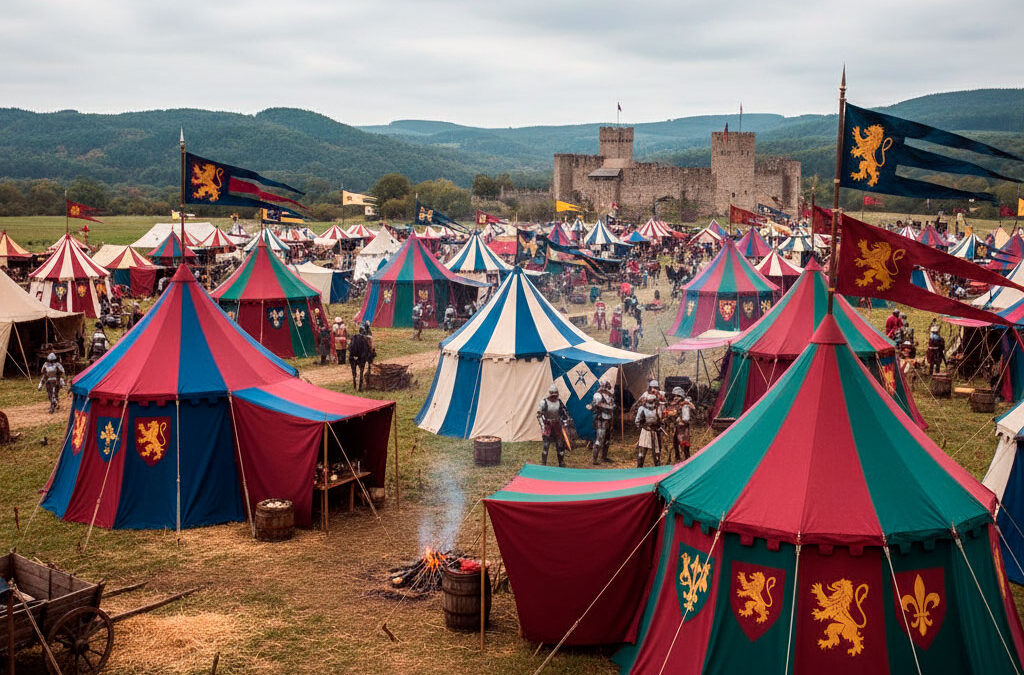 Que história se esconde sob a lona de uma tenda medieval? Imagina um campo tingido de estandartes, um murmúrio de ferreiros e a brasa dos fogões: no meio dessa paisagem, as tendas não eram simples refúgios, eram palácios móveis …
